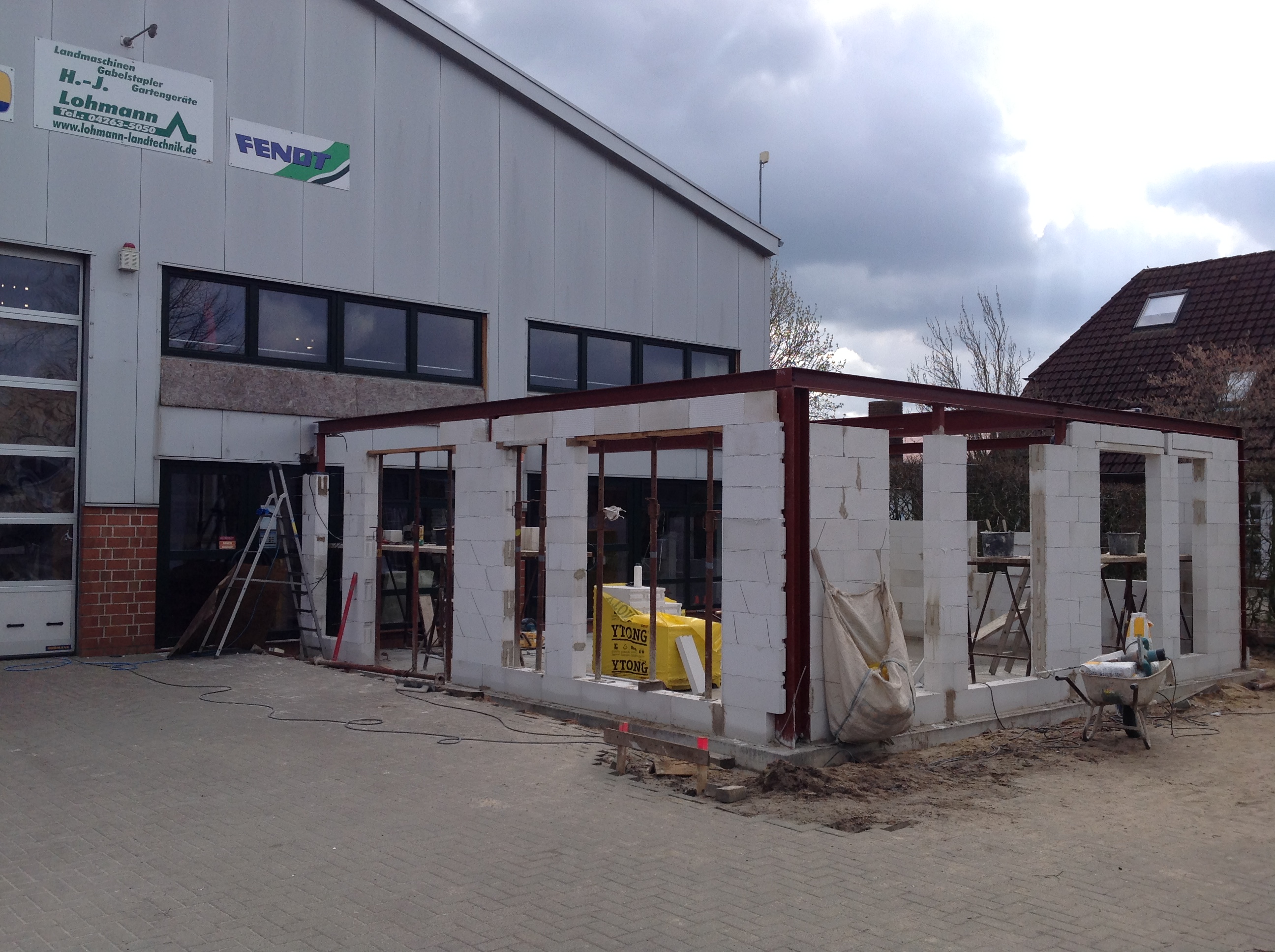 Anbau der Werkstatt mit Waschhalle und Bau neuer Sozialräume, sowie eines Ölraums, Gesamtfläche der neuen Halle ca. 480 Quadratmeter